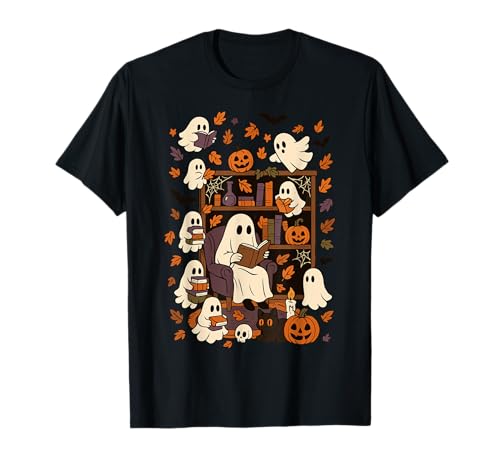 Spooky Ghost Reading Books Chair Halloween Library Bookworm T-Shirt