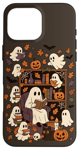 Spooky Ghost Reading Books Chair Halloween Library Bookworm Case for iPhone 16 Pro Max
