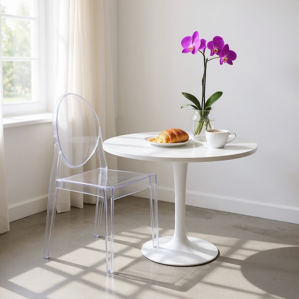 Modern and Contemporary Ghost Clear Plastic Dining Chair – Sleek and Minimalist Look, Transparent Acrylic Design for Dining Rooms, Kitchens, Offices, or Indoor and Outdoor Use