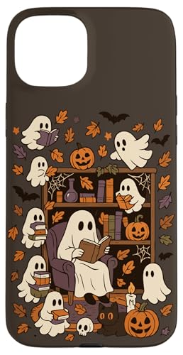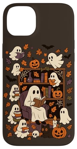 Spooky Ghost Reading Books Chair Halloween Library Bookworm Case for iPhone 15 Plus