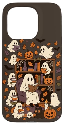 Spooky Ghost Reading Books Chair Halloween Library Bookworm Case for iPhone 15 Pro