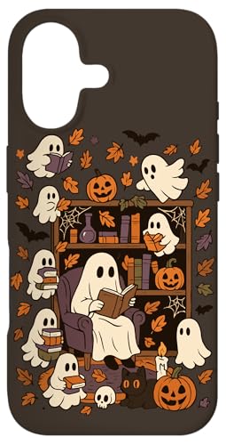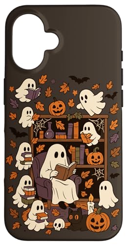 Spooky Ghost Reading Books Chair Halloween Library Bookworm Case for iPhone 16