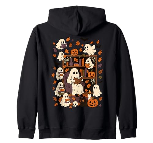 Spooky Ghost Reading Books Chair Halloween Library Bookworm Zip Hoodie