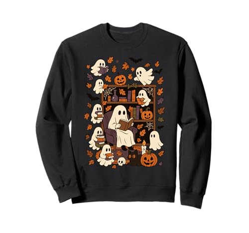 Spooky Ghost Reading Books Chair Halloween Library Bookworm Sweatshirt