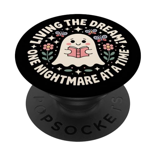 Living Dream One Nightmare Spooky Ghost Reader Bookish Humor PopSockets Adhesive PopGrip
