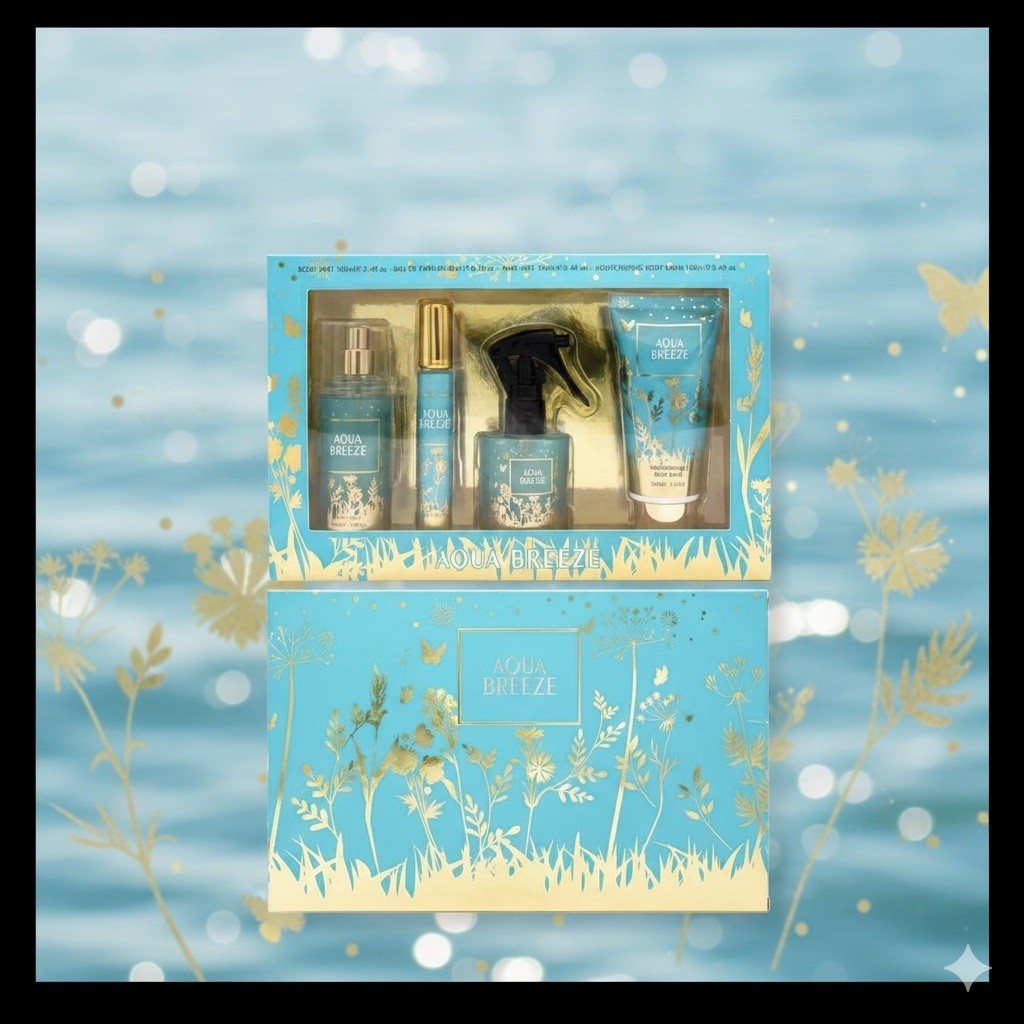 Aqua Breeze 4-Piece Fragrance Gift Set - Body Mist, Lotion & More - New In Box