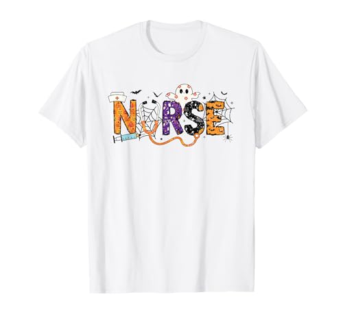 Funny Halloween Nurse Shirt Ghost Pumpkin Spider Web Costume T-Shirt
