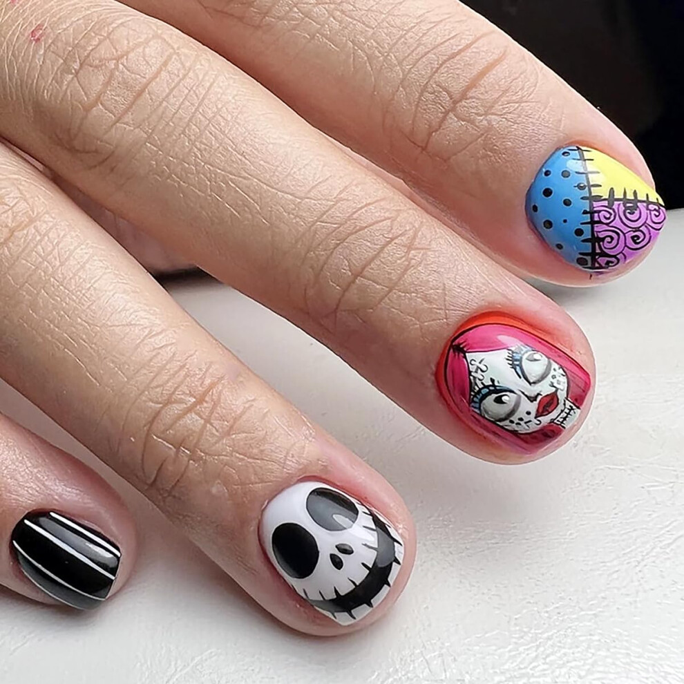 Halloween Press On Nails Short Square Ghost and Nightmare Design Fake Nails with Glue 24 Pcs