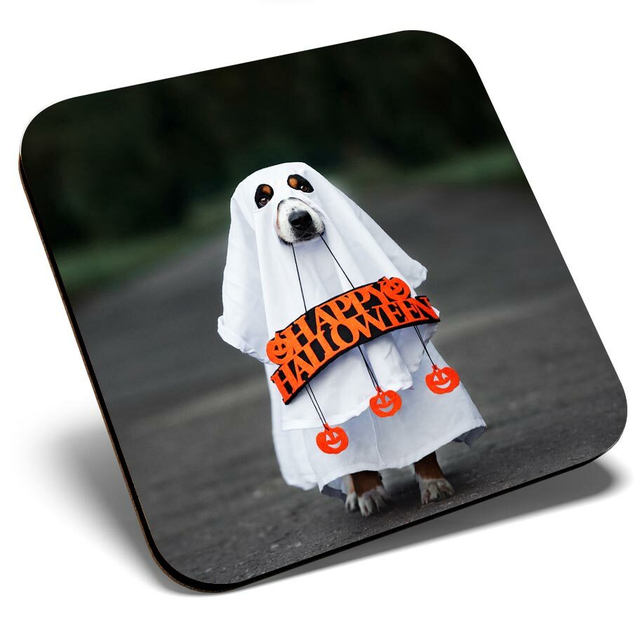 Square Single Coaster - Ghost Dog Halloween Costume #45145