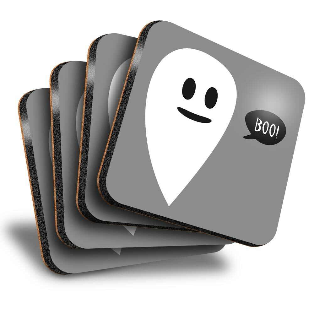 Set of 4 Square Coasters - BW - Boo Ghost Halloween Cute Quote #42225