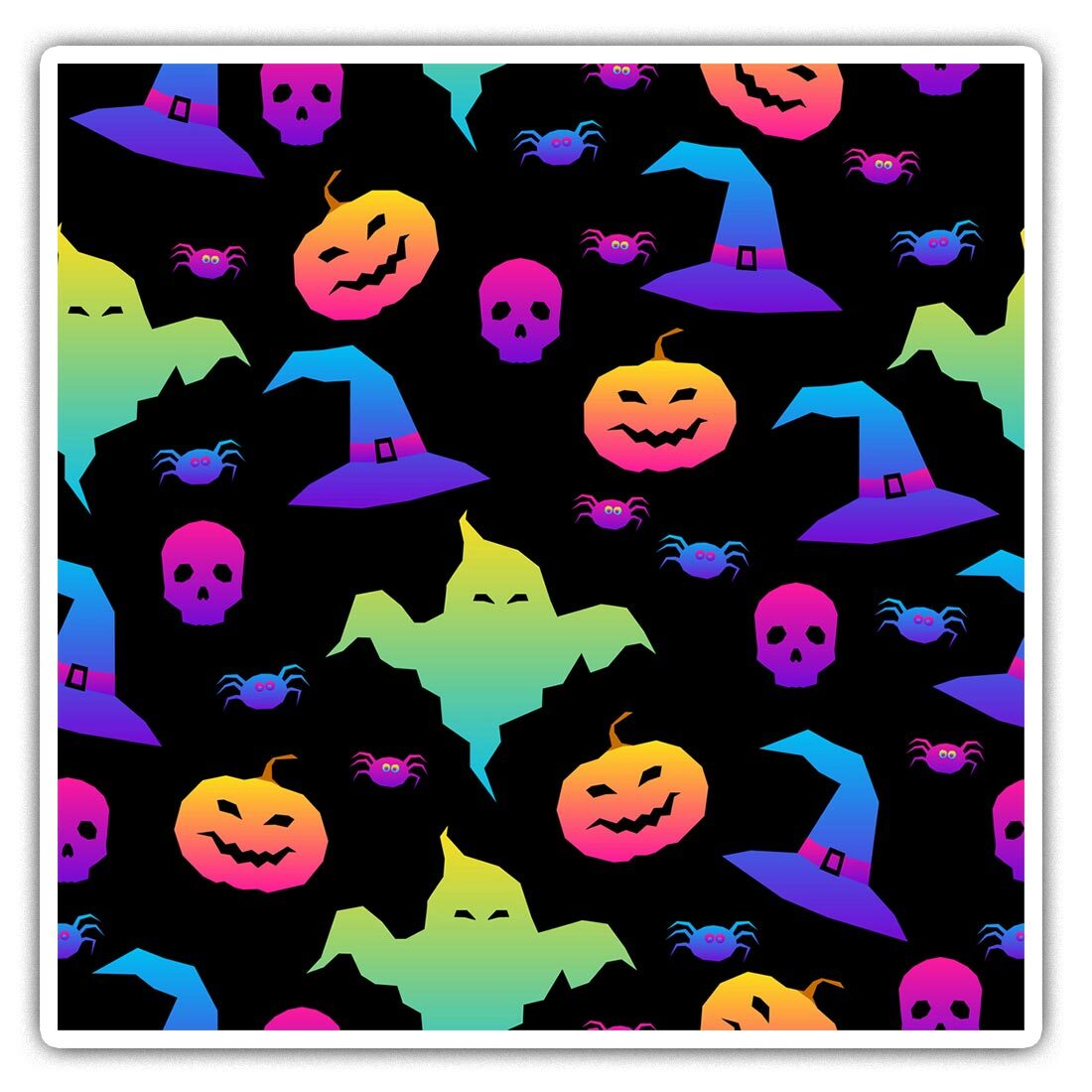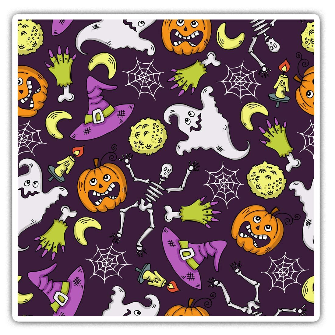 2 x Square Stickers 10 cm - Halloween Pattern Pumpkin Ghost Bats #45281