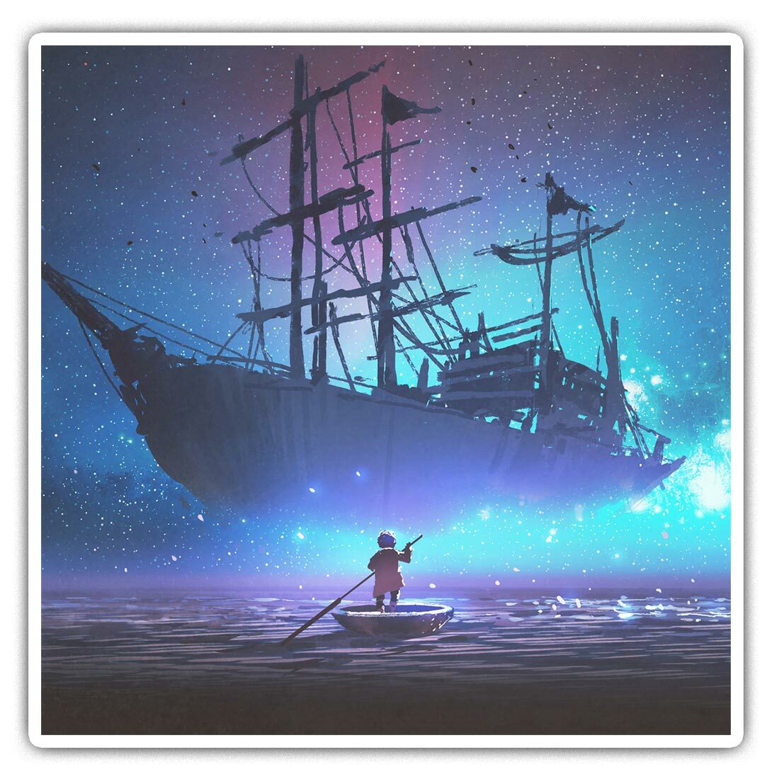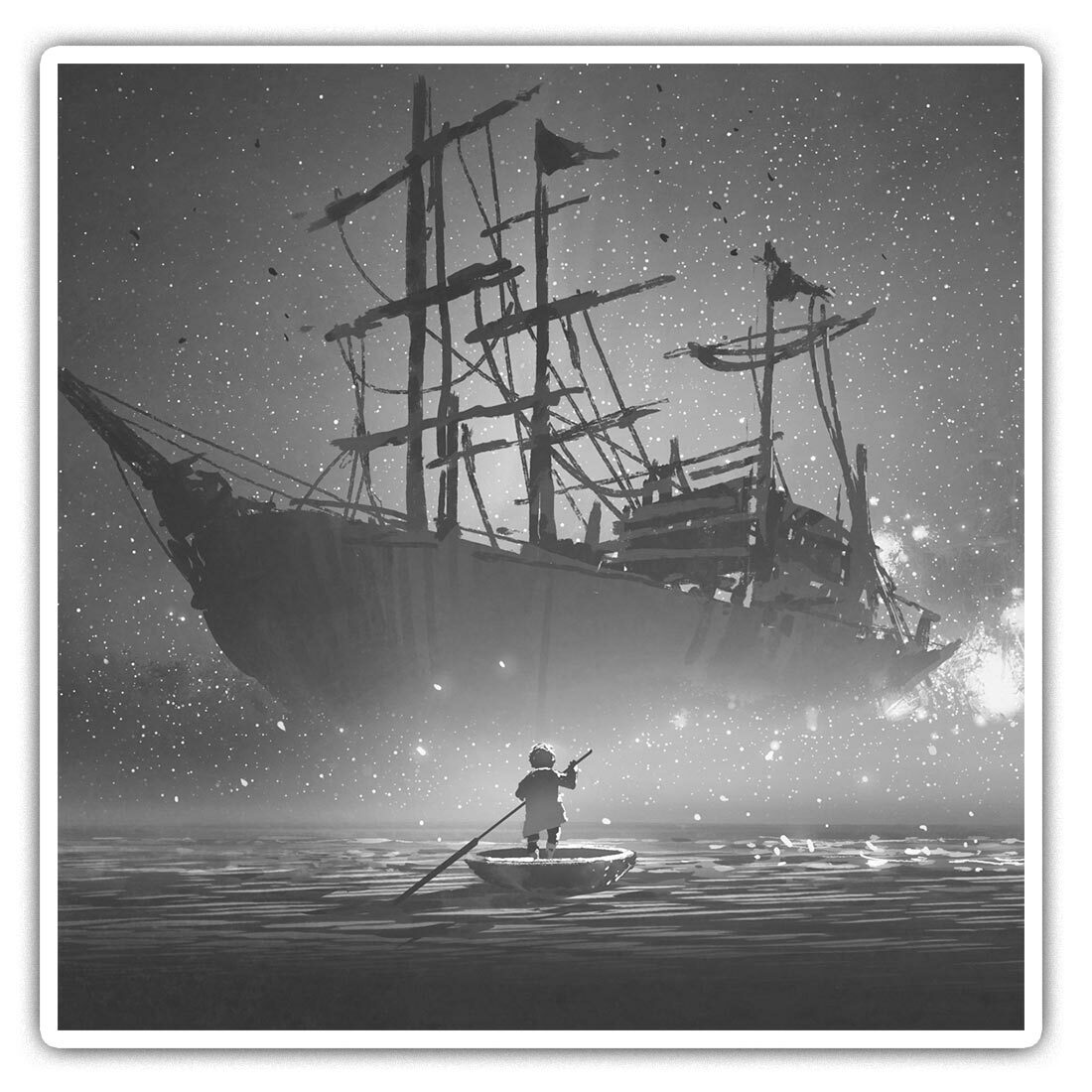 2 x Square Stickers 10 cm - Ghost Magical Ship Pirate Fantasy #35961