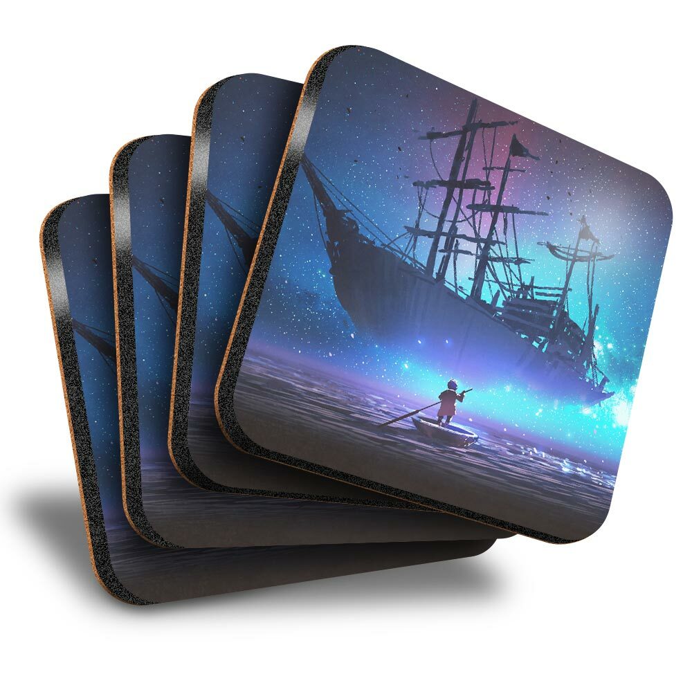 Set of 4 Square Coasters - Ghost Magical Ship Pirate Fantasy #14022