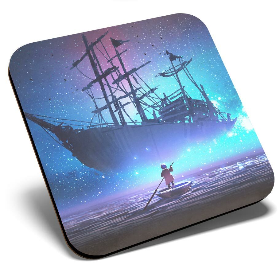 Square Single Coaster - Ghost Magical Ship Pirate Fantasy #14022
