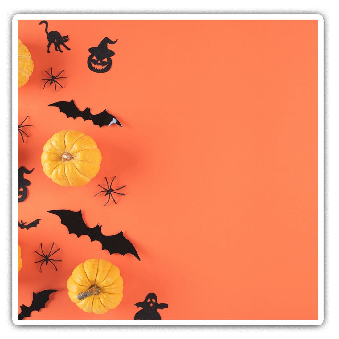 2 x Square Stickers 10 cm - Orange Halloween Ghost Bats Pumpkins #45941