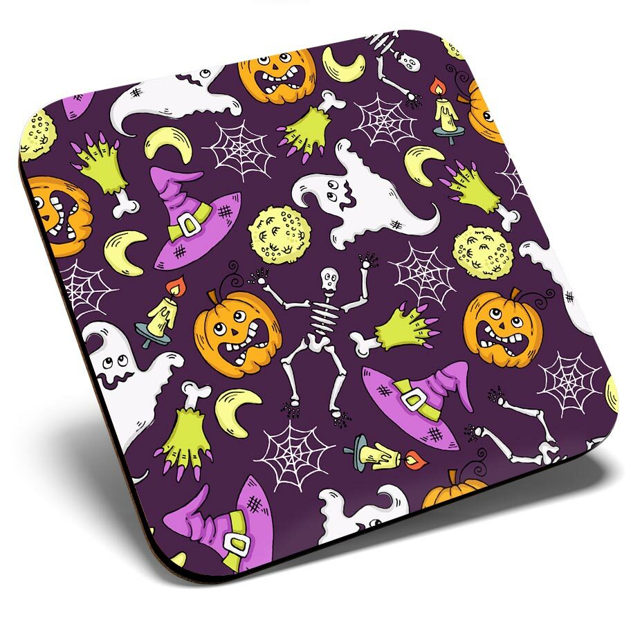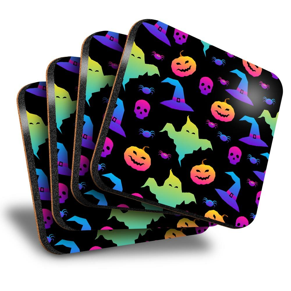 Set of 4 Square Coasters - Halloween Pattern Pumpkin Ghost Bats #45281