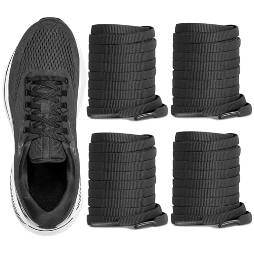 UamGlsob 2 Pairs Striped Shoelaces for Brooks Ghost Running Sneaker, 6mm Flat Trainers Laces Thin Strings (Black, 54"/140cm)