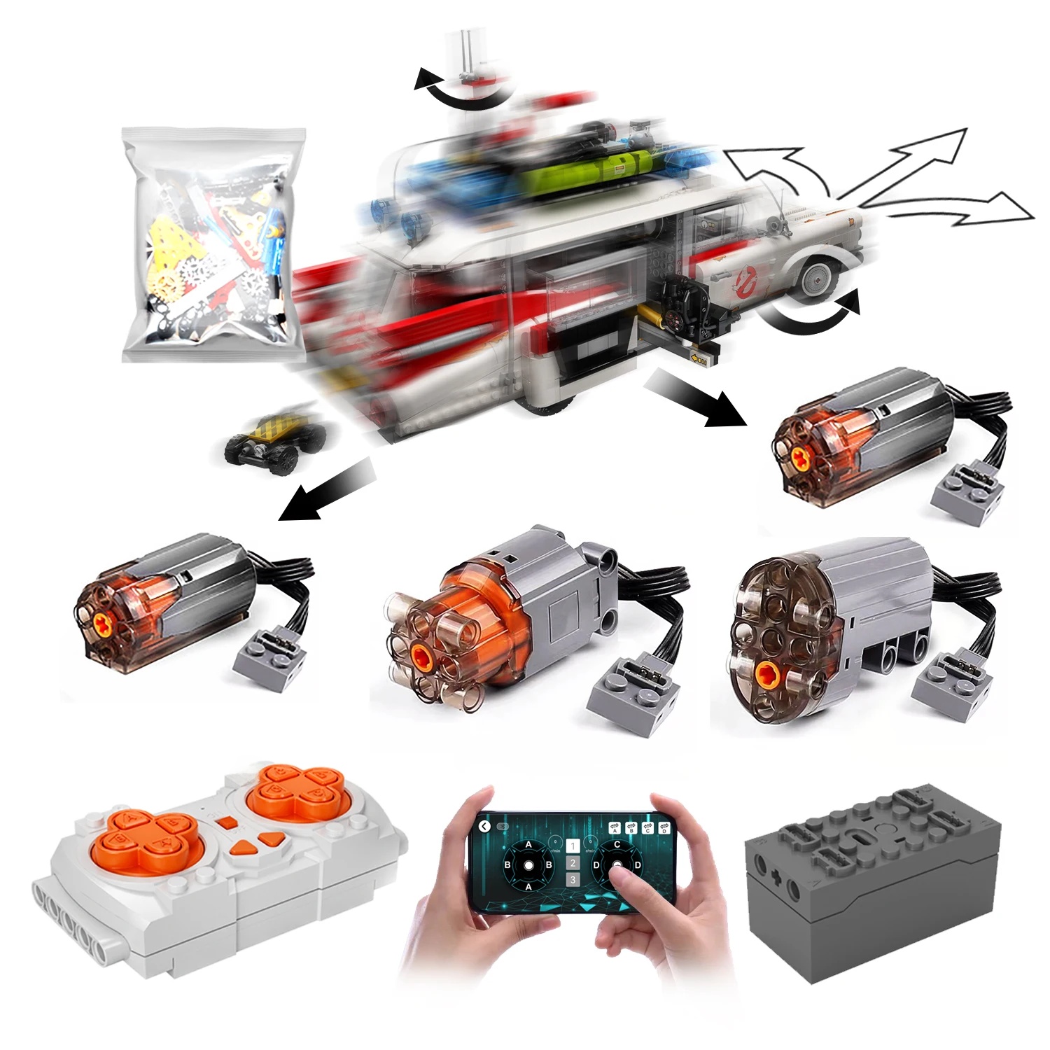 Motorized Motor for LEGO Icons Ghostbusters ECTO-1 10274 - Does not Include Toy Model,MOC Motor System only (10274-Motorized)