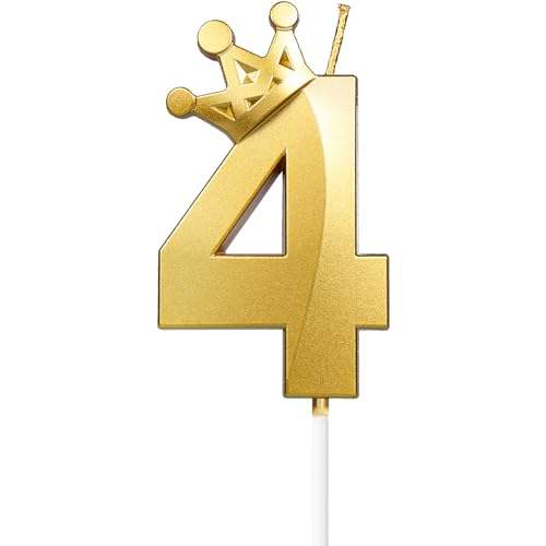 Yiran Gold 4th Birthday Candles with Crown, 3inch Giant Number 4 Candle, 4th Birthday Candle for Cake,Happy Birthday Candle, Cake Candles Cake Topper Decorations for Girls Boys Birthday Party Supplies