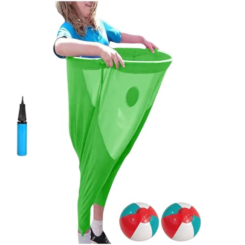 Granny Pants Yard Game sets with Bouncy Balls,Freaky Party Games Pants,Fill Your Giant Pant,Fun Family Reunion & Adult Yard Game for Groups. (Green,2 balls)