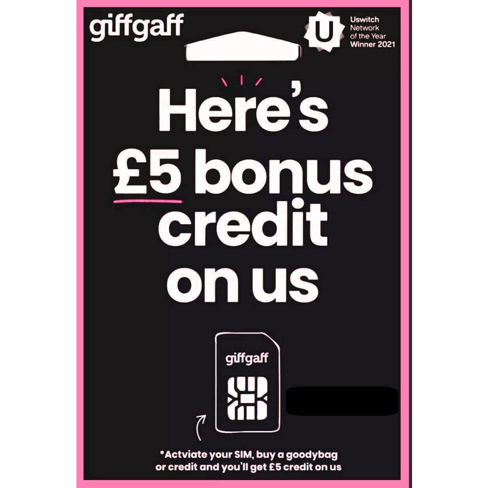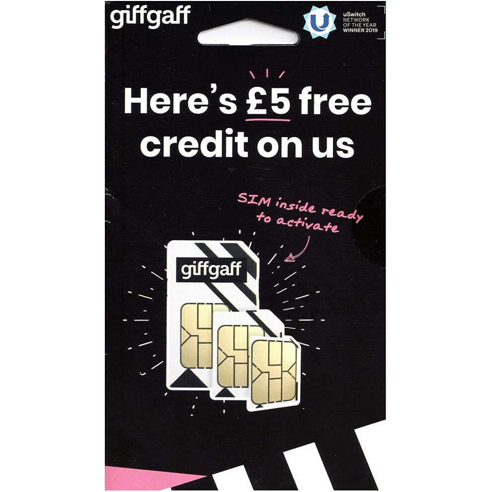 SIM Card 2G 3G 4G â Giffgaff O2 Multi Size Standard Micro Nano 5 Bonus Credit After You Top-Up 10 First Time. Calls Texts Data. Pay As You Go iPhon