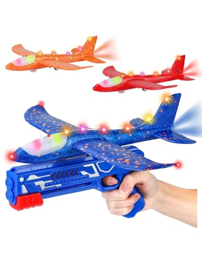 Lonexo 3x Boys Toys Age 4 5 6 7 8 9 Year Old Boy Gifts, 3 FULL SETS - LED Light Airplane Launcher Toy, Outdoor Garden Toys Christmas Birthday Present Gift for Kids Age 3 4 5 6 7 8 9 Year Old Boys