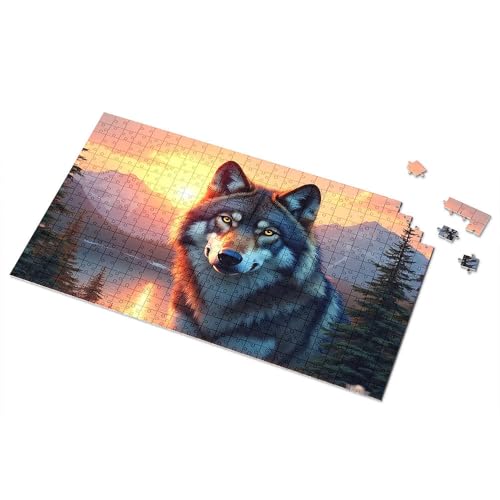 Puzzle 500 Pieces Wolf In The Sunset Mountains Picture Puzzle Toys For Boys 6-8 Gift For 4 Year Old Boy(300PCS)