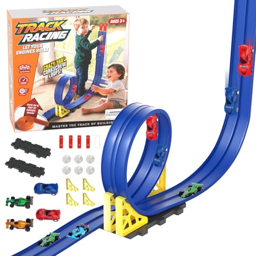 5m Race Car Track Flexible Race Track for Kids, Toy Car Ramp Rolls up Portable Dual Flexible car track, Toys for 3 4 5 6 7 8 Year Old Boys, 4-8 Year Boy Old Birthday Gift, Racing Tracks