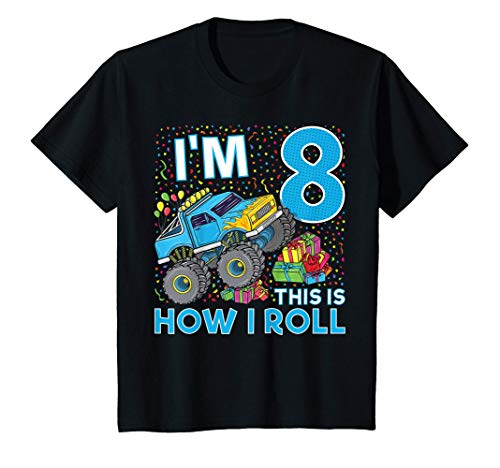 Youth 8th Birthday Monster Truck Party Gift 8 Year Old Boy T-Shirt