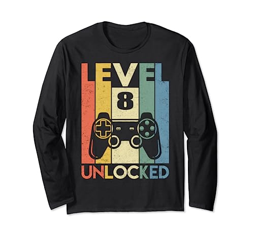 Gaming Vintage 8th Birthday Gift 8 Year Old Boy Girl Gamer Long Sleeve T-Shirt