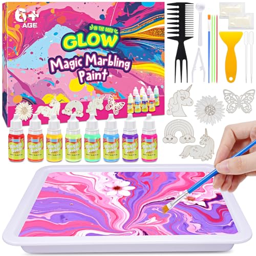 Hapikids Glow Water Marbling Paint for Kids, Arts and Crafts for Kids Age 6-12 Toys for 7-12 Year Old Girls Gift for 9 10 11 Year Olds Girls Boys Crafts for Kid Age 7-12 Birthday Gift Ideas