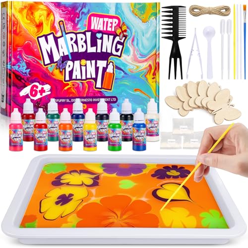 Lovchil Water Marbling Paint Kit for Kids, Arts and Crafts for Kids 6-12 Toys for 7-12 Year Old Girls Gift Paint Craft Kits for Kid 6 7 8 9 10 11 12 Year Old Girls Boys Birthday Gift DIY Ideas