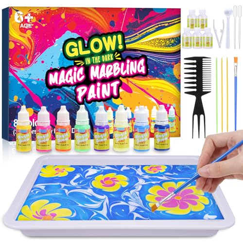 Hapikids Glow Water Marbling Paint for Kids, Arts and Crafts for Kids Age 6-12 Toys for 7-12 Year Old Girls Gift for 9 10 11 Year Olds Girls Boys Crafts for Kid Age 7-12 Birthday Xmas Gift Ideas