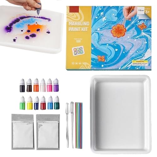 Marble Painting Kit, Water Marbling Paint Set | Water Marbling Kit for Textile Paper - Creative Gift Ideas and Crafts for Girls and Boys Age
