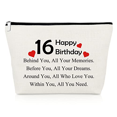 16th Birthday Gifts for Girls Makeup Bag 16 Year Old Birthday Gifts Ideas Sweet 16 Present for Her Cosmetic Bag 16th Birth Day Gift for Daughter Granddaughter Friends Sister Niece BFF Friendship Gift