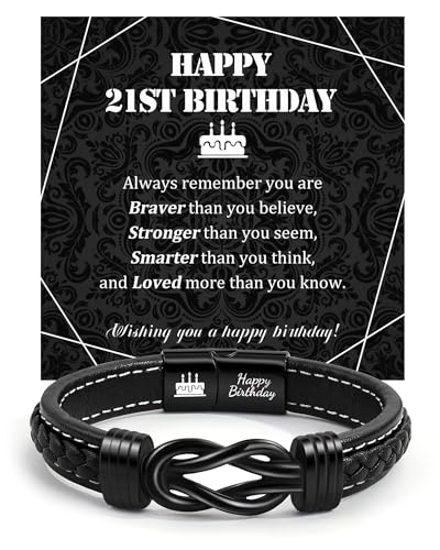 VU100 21st Birthday Gifts for Men, Leather Bracelet for Men 21st Birthday Gift Ideas for Him Unique 21 Year Old Presents for Son Nephew Grandson Brother Friend Boyfriend