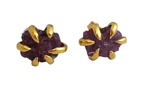 Raw Ruby Gold Plated Sterling Silver Stud Earrings - Natural Gem Gemstone - Handmade Jewellery Gift Ideas for Women - Birthday Valentine's Mother's Day Gift
