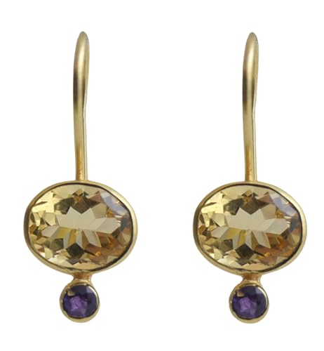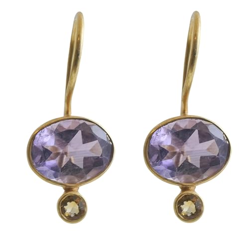 Citrine and Amethyst Gold Plated Sterling Silver Drop Earrings - Natural Gem Gemstone -Birthday Valentine's Mother's Day Gift - Handmade Jewellery Gift Ideas for Women (Citrine and Amethyst)