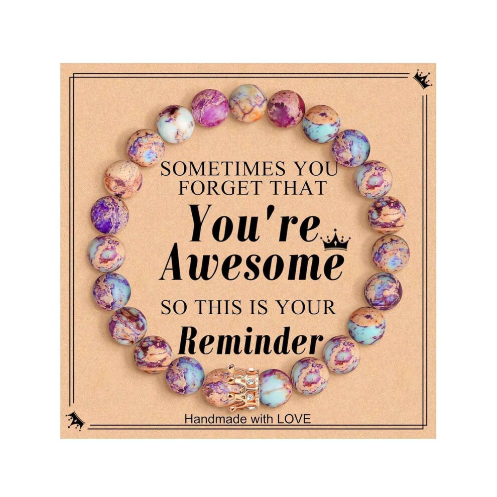 Beaded Bracelets for Teen Girls Valentine's Day Gift Ideas, 12 Year Old Birthday Jewelry, Wooden Watch, Gold Accents