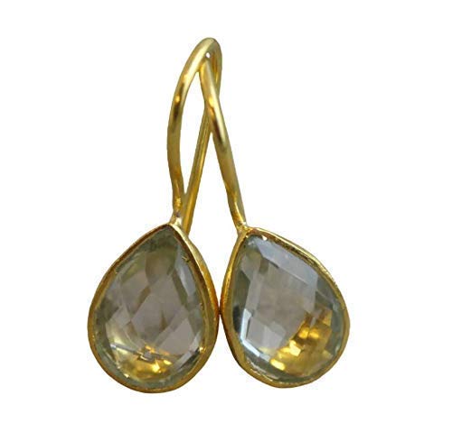 Green Amethyst Gold Plated Sterling Silver Drop Earrings - Natural Gem Gemstone - Handmade Jewellery Gift Ideas for Women - Birthday Valentine's Mother's Day Gift (prasiolite-quartz)