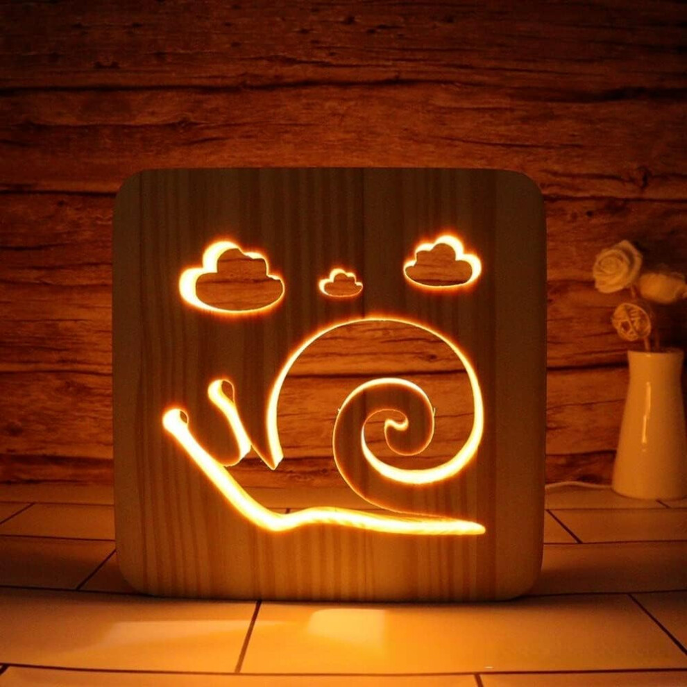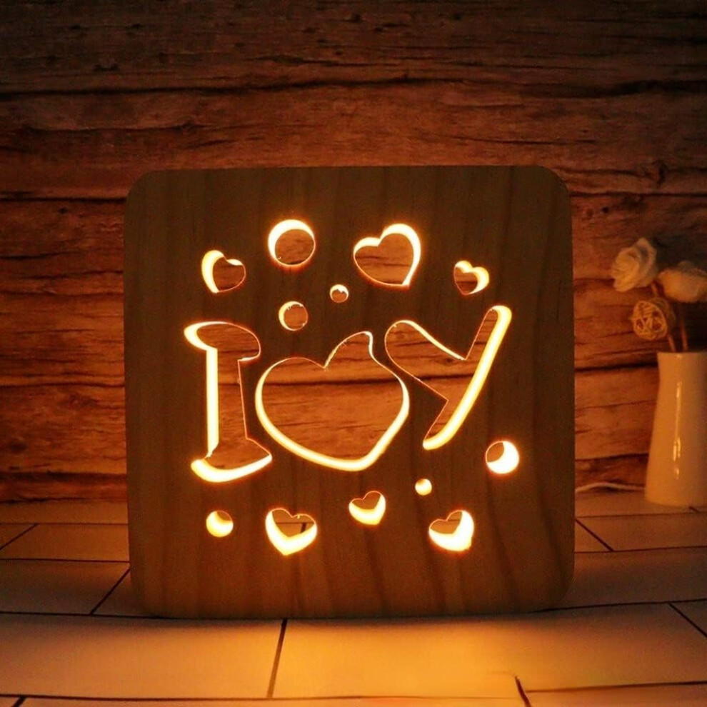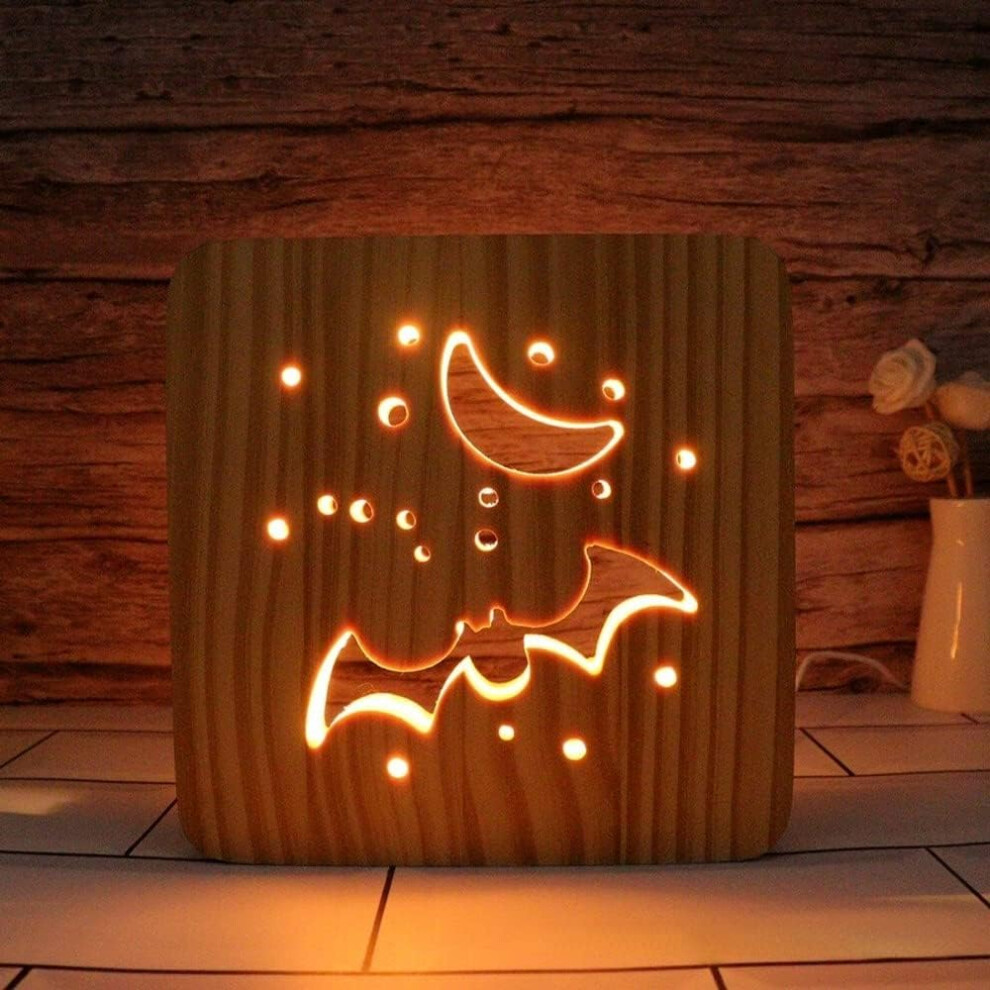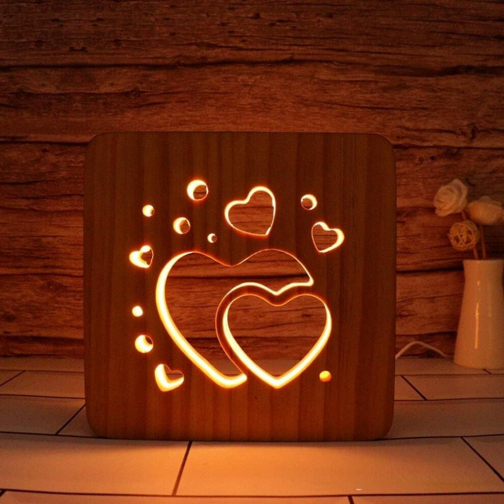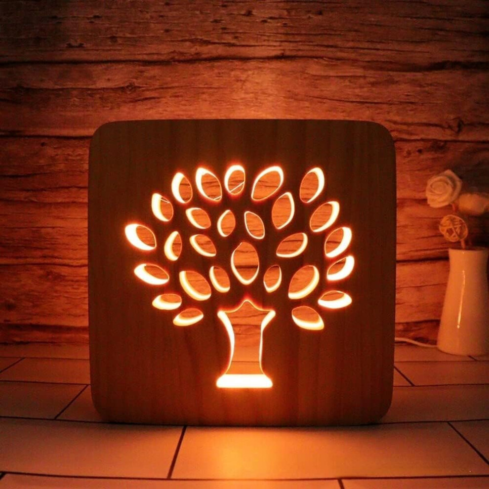 Creative Wooden LED Night Light,3D Wood Hollow Carving Warm White Lights, USB Powered Desk Table Lamp, Lovely Gift in Living Room/Home Decor