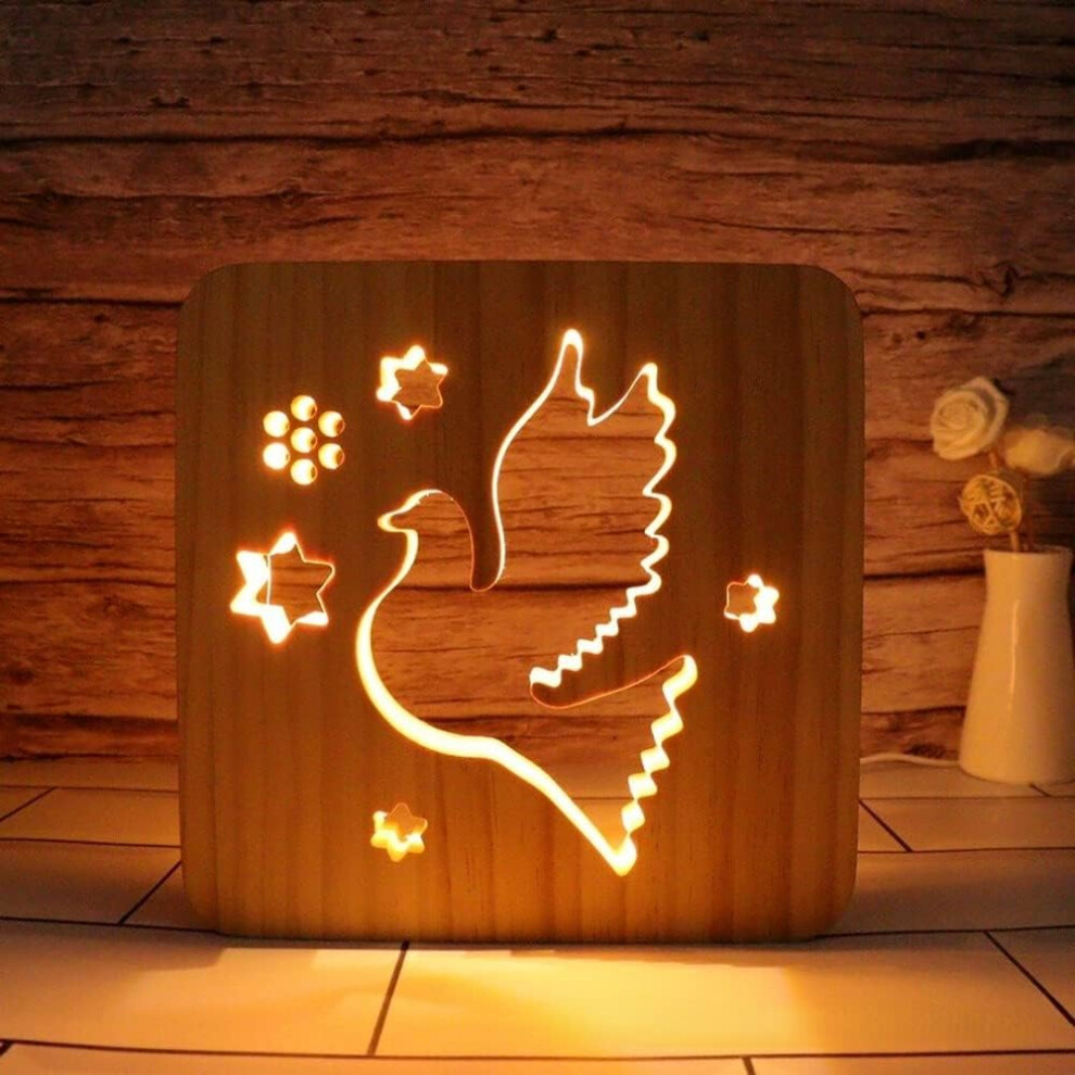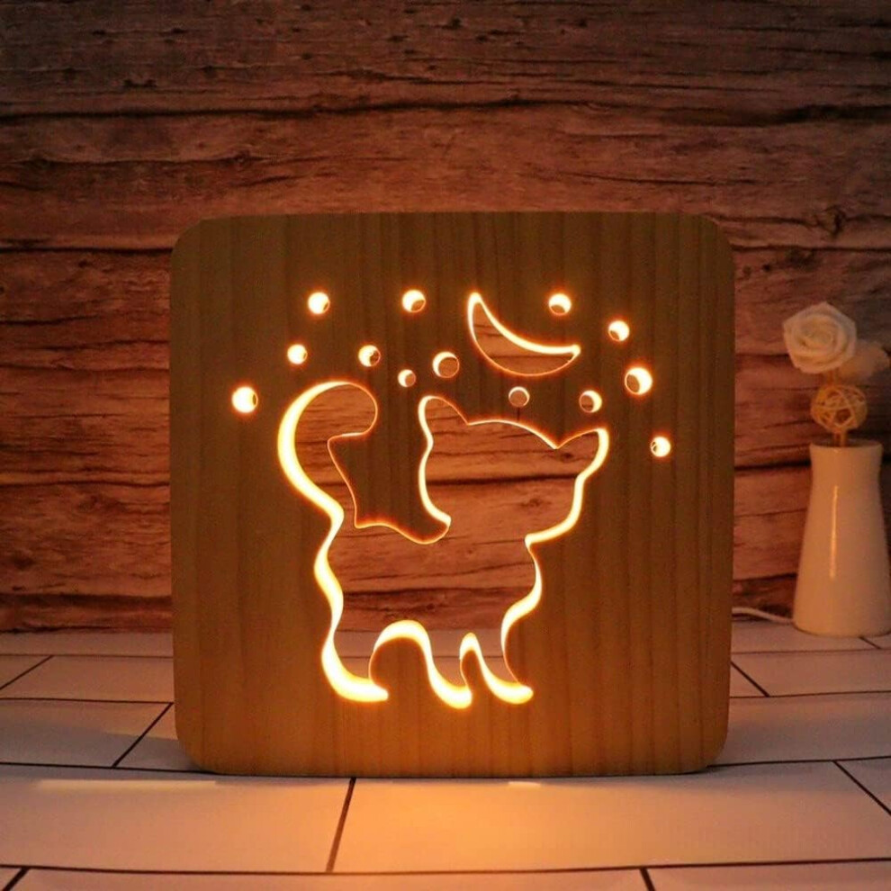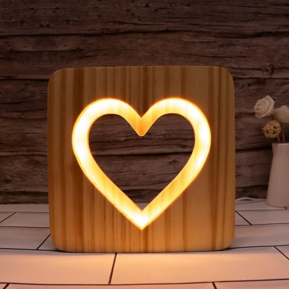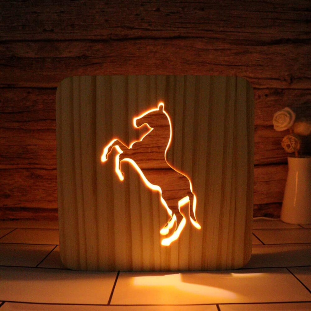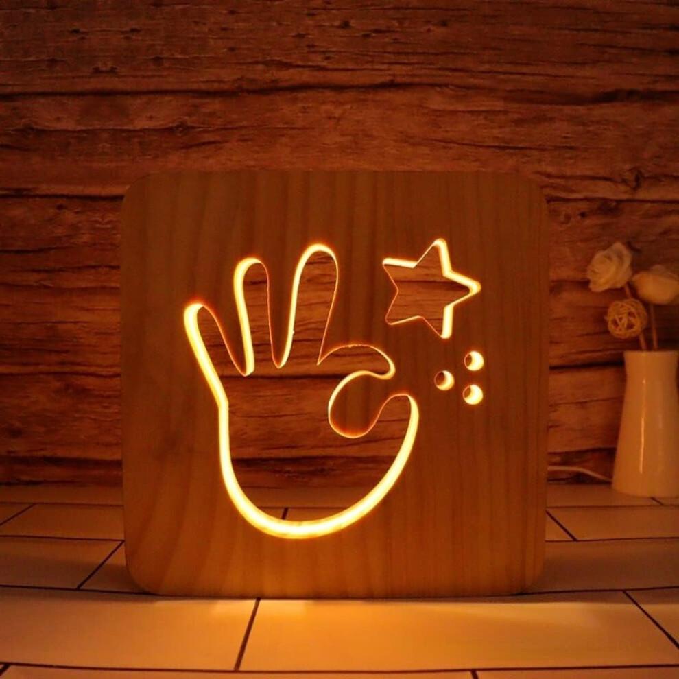 Creative Wooden LED Night Light,3D Wood Hollow Carving Warm White Lights, USB Powered Desk Table Lamp, Lovely Gift in Living Room/Home Decor