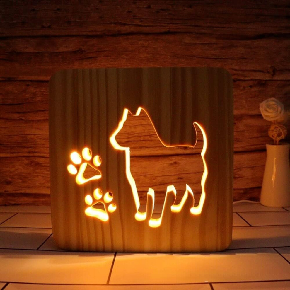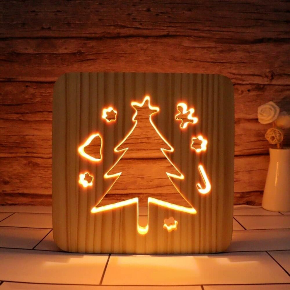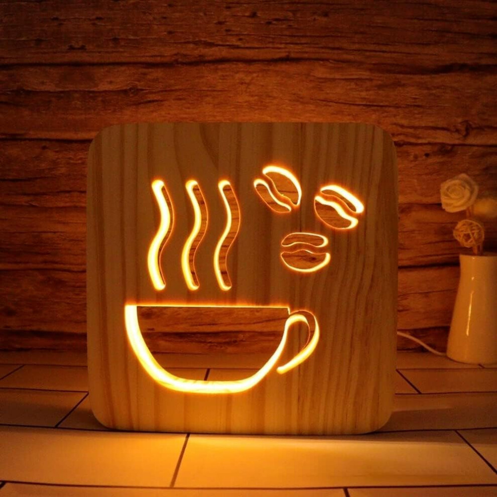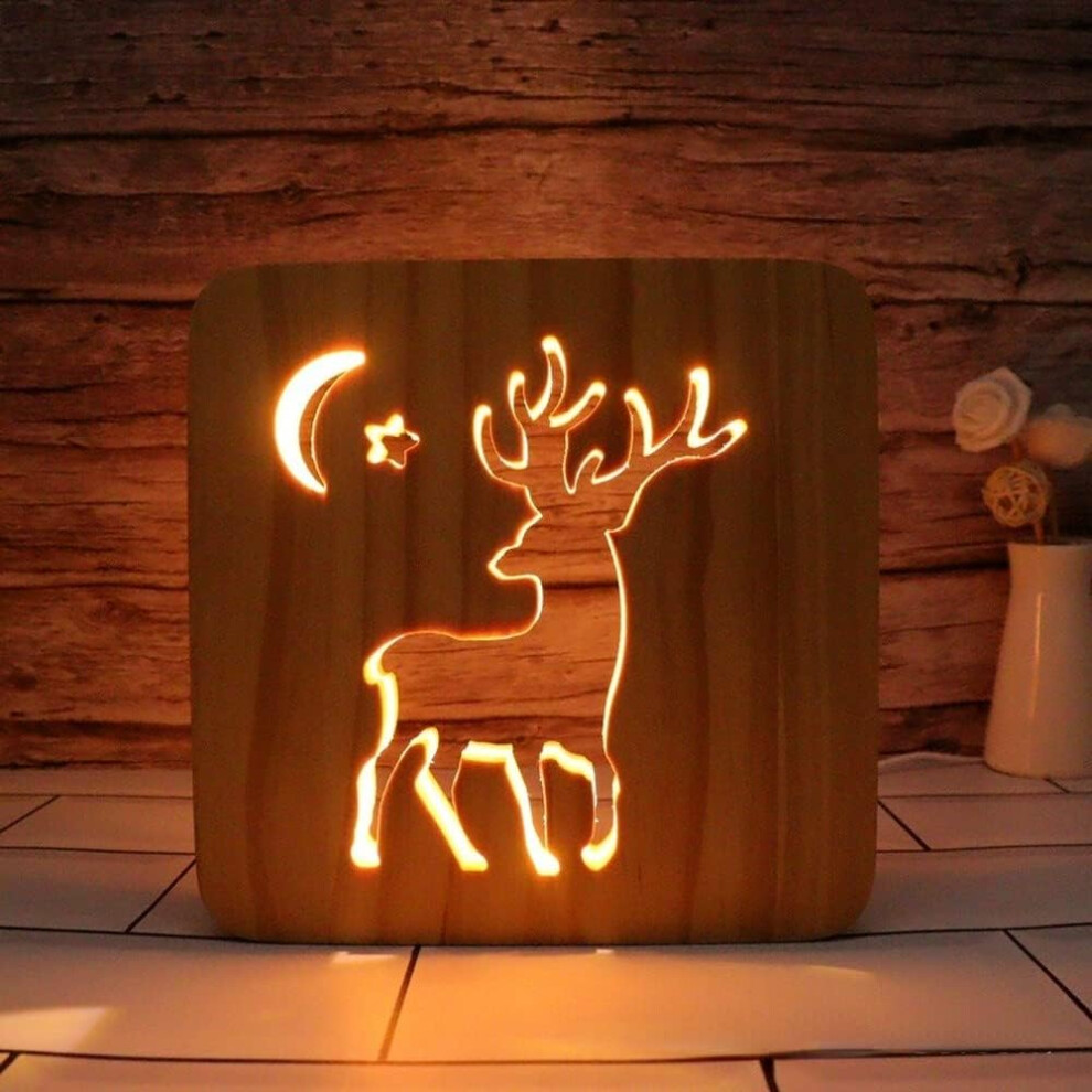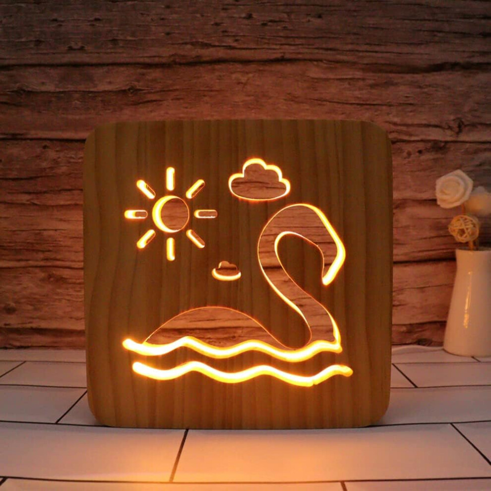 Creative Wooden LED Night Light,3D Wood Hollow Carving Warm White Lights, USB Powered Desk Table Lamp, Lovely Gift in Living Room/Home Decor
