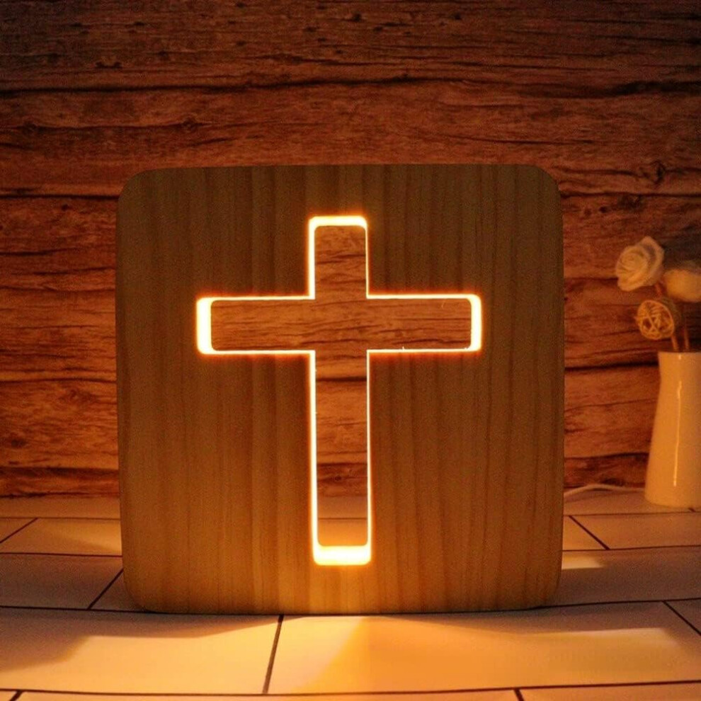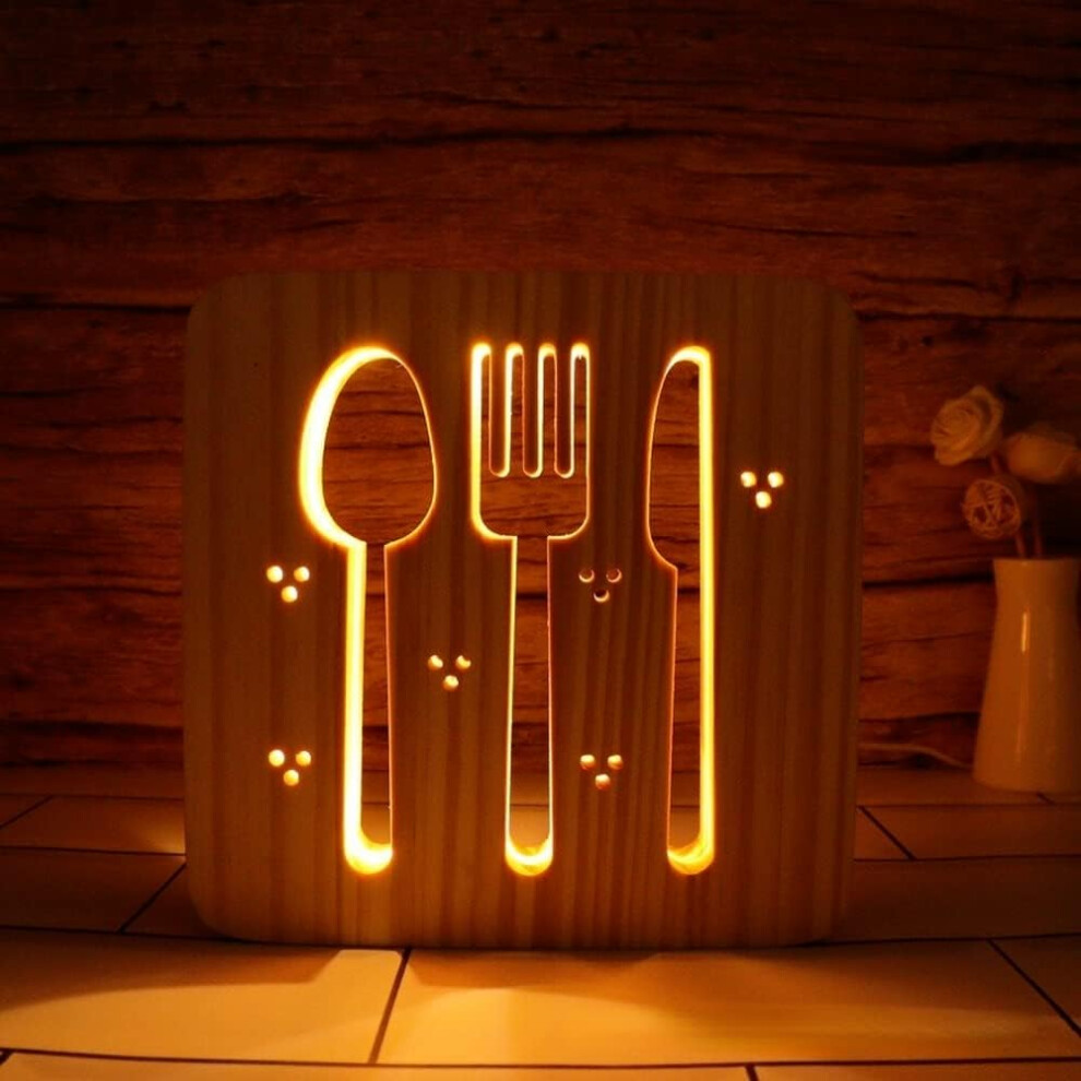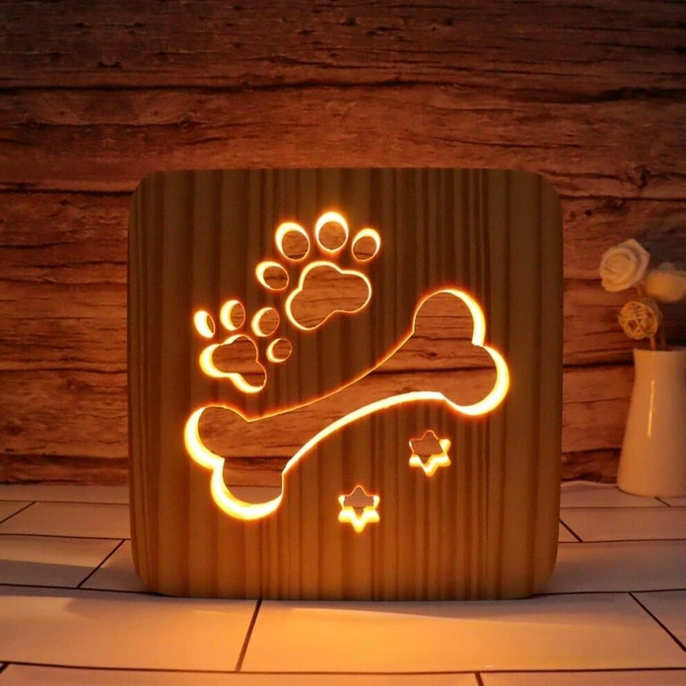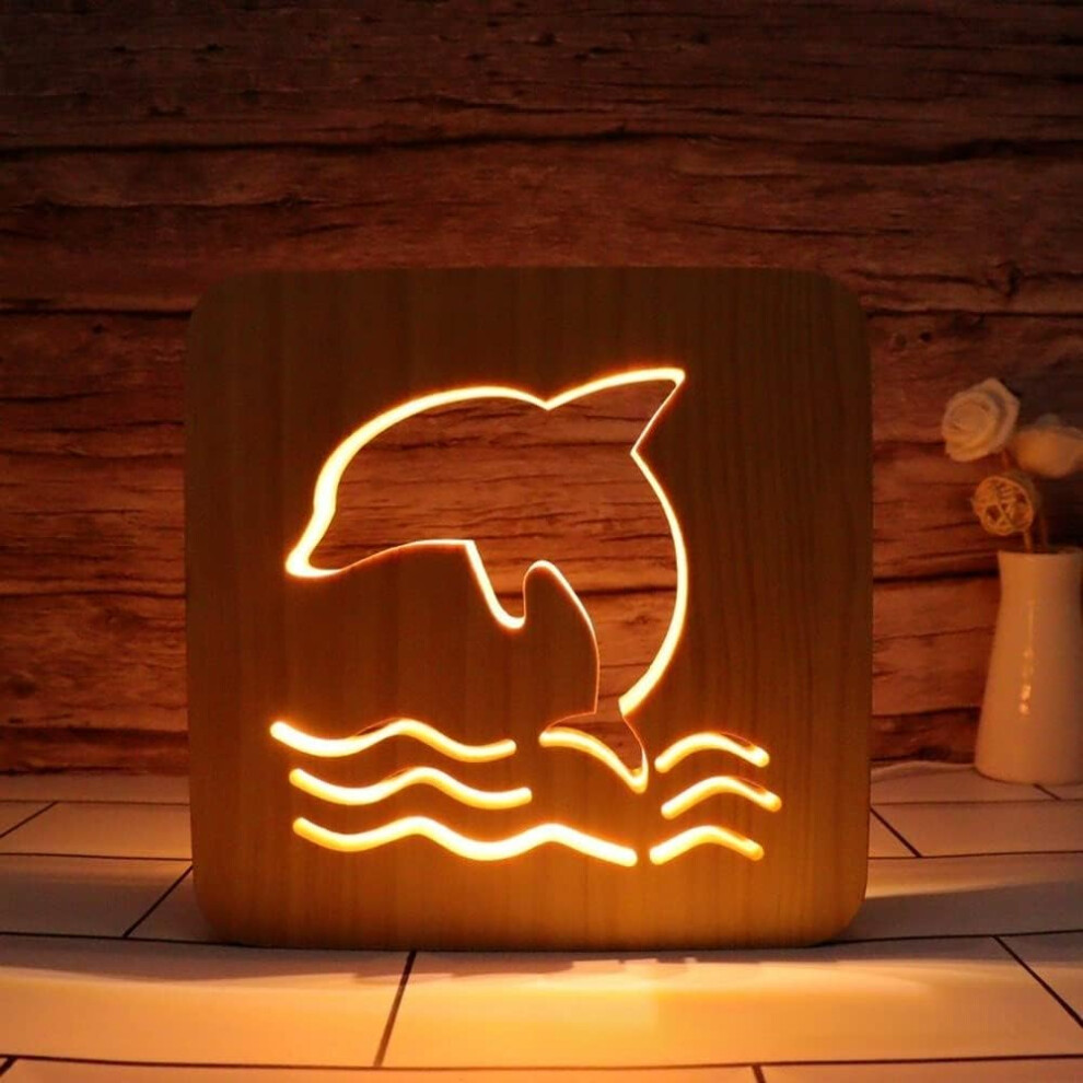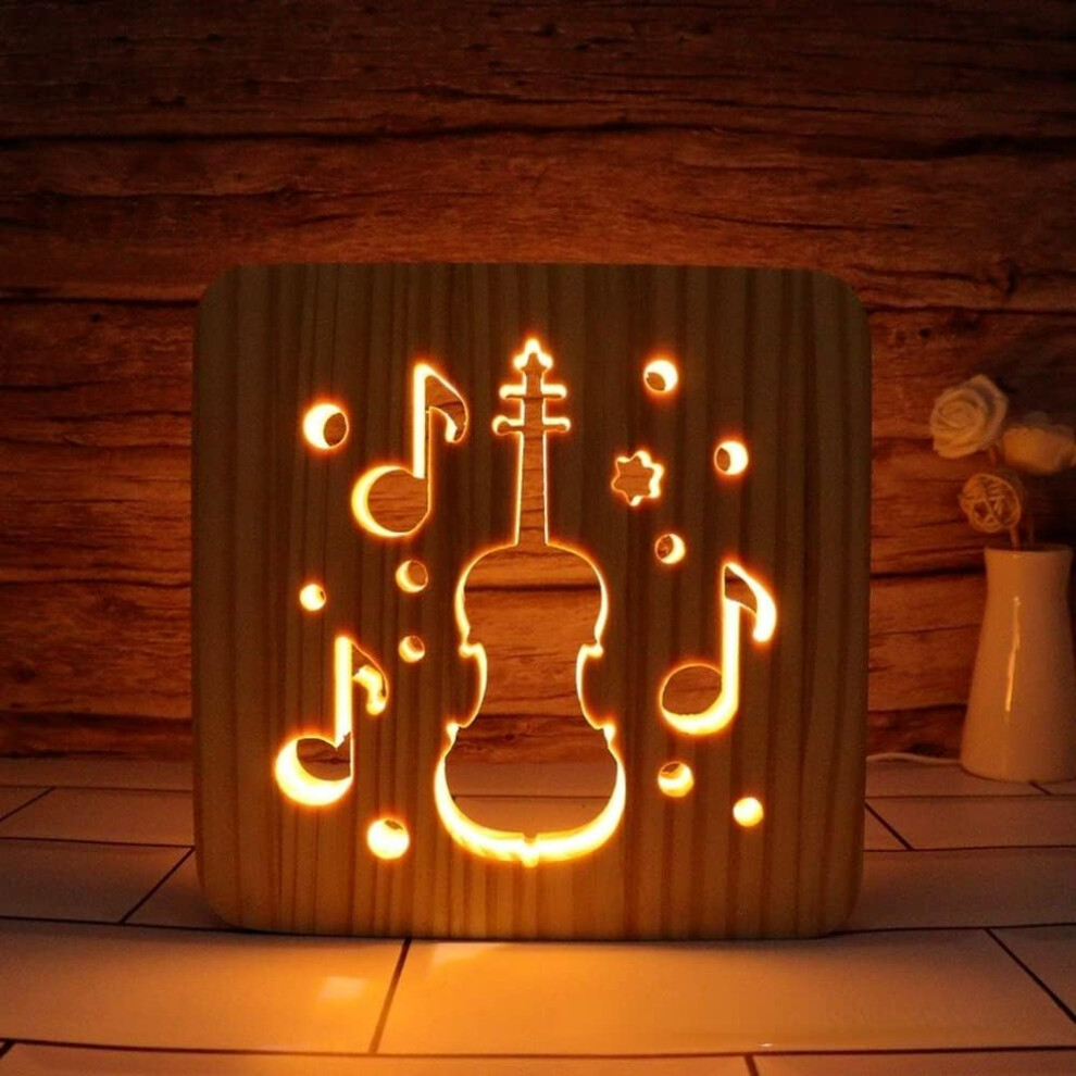 Creative Wooden LED Night Light,3D Wood Hollow Carving Warm White Lights, USB Powered Desk Table Lamp, Lovely Gift in Living Room/Home Decor