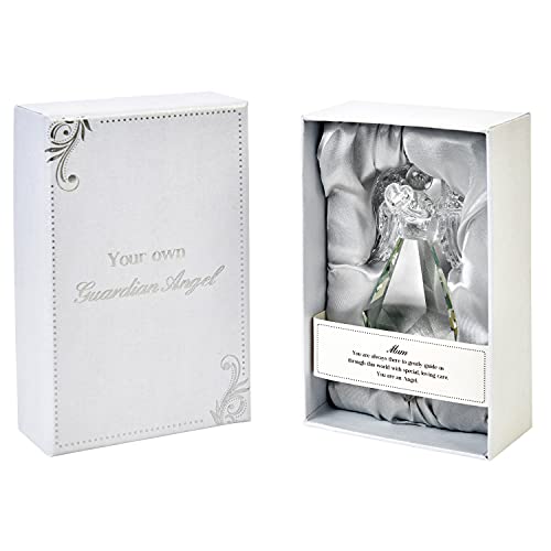 Papillon Guardian Angel with Heart Figurine transparent Crystal Ornament for Mum Glass Statue Religious Heart-Warming Caption in Gift Box Home Decor Gift for Home, Outdoor Garden & Office One Size