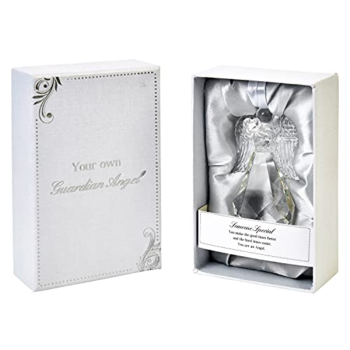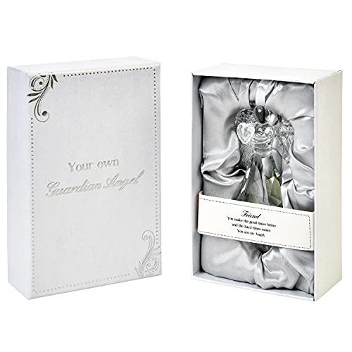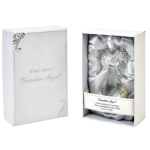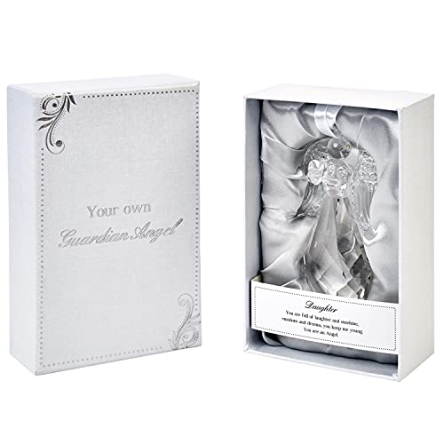 Guardian Angel Figurine transparent Crystal Ornament for Daughter, Outdoor Garden & Office, Glass Statue Religious Heart-Warming Caption in Gift Box, Home Decor Gifts, One Size