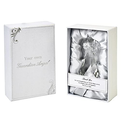 Thank you Guardian Angel with Heart Figurine transparent Crystal Ornament for Home, Outdoor Garden & Office | Glass Statue Religious Heart-Warming Caption in Gift Box | Home Decor Gifts, One Size
