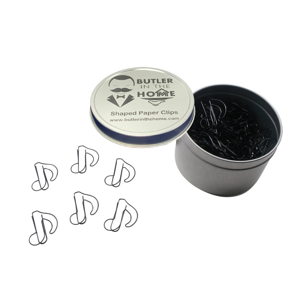 Butler in the Home 100 Count Music Note Shaped Paper Clips Great for Paper Clip Collectors or Office Gift - Comes in Round Tin with Lid and Gift