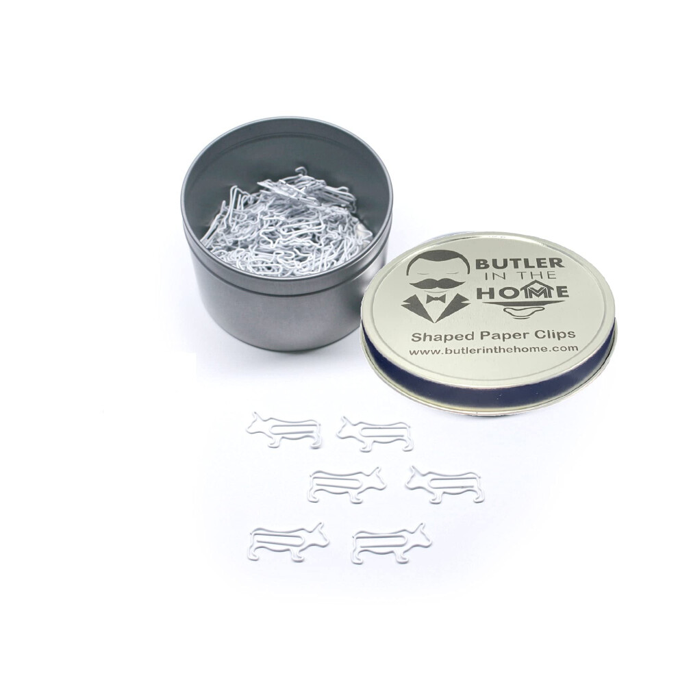 Butler in the Home Cow Bull Shaped Paper Clips Great for Paper Clip Collectors or Office Gift - Comes in Round Tin with Lid and Gift Box (White 100 Co
