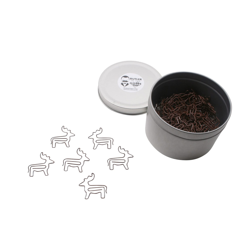 Butler in the Home 100 Count Deer Shaped Paper Clips Great for Paper Clip Collectors or Office Gift - Comes in Round Tin with Lid and Gift Box (Brown)